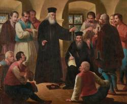 Инспирисан народном песмом Почетак буне против дахија,32) у манастиру је насликао још две историјске композиције: Бирчанин Илија плаћа данак Турцима, на којој Илија Бирчанин стоји надмено са десном руком на јатагану, а левом показује на просуте дукате и групну сцену у ентеријеру „Хаџи Рувим и Хаџи Ђера”.33)34) Обе слике се такође сада налазе у Галерији Матице српске.